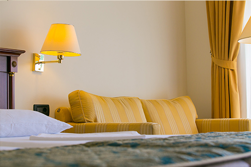 Hotel MERIDIJAN ima 45 dvokrevetnih soba. Sve sobe su opremljene stilskim namještajem u bidermajer stilu, telefonom, mini barom, satelitskom televizijom, wireless Internetom, sefom, klima uređajem, balkonom te kupaonicom. Sve kupaonice imaju kadu za kupanje, sušilo za kosu, povećavajuće ogledalo te set proizvoda za njegu. Sve sobe su namjenjene nepušačima.